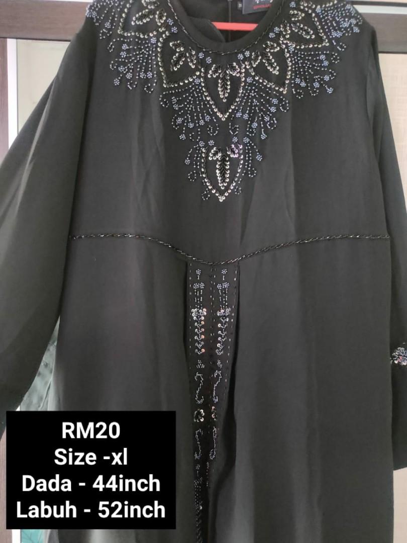Jubah Hitam Bersulam Size 48 Duit4raya Women S Fashion Muslimah Fashion Dresses On Carousell